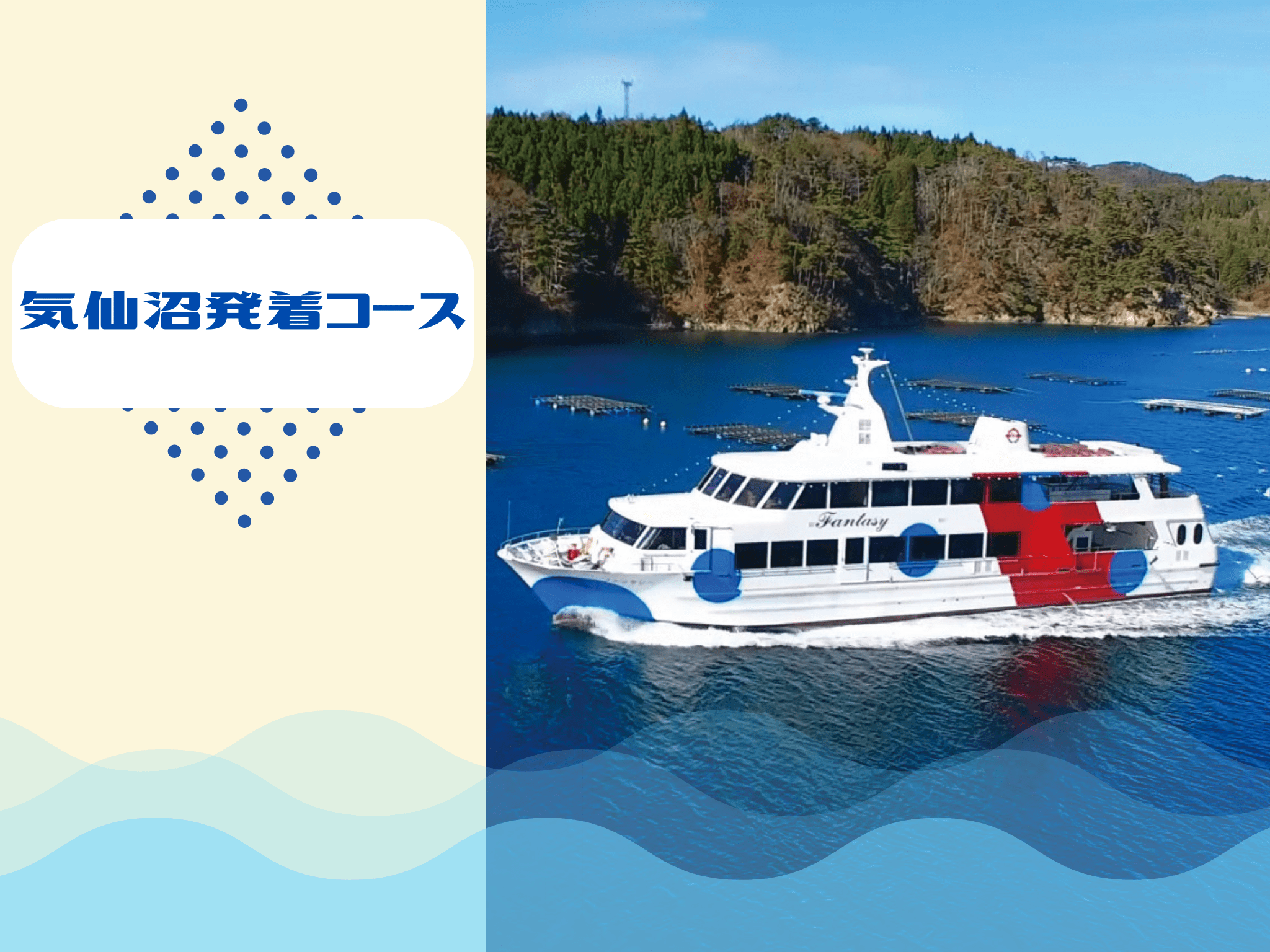 The Kesennuma Bay Cruise tours Kesennuma Bay and Kesennuma Oshima Island within the Sanriku Fukkō National Park. Our marine guides provide a memorable cruise experience, sharing insights into Kesennuma's nature, history, and seasonal highlights. Featuring the popular seagull feeding experience, this maritime sightseeing is enjoyed by visitors of all ages. Enjoy the unique seascape from the boat as you gaze upon the calm, blue waters of Kesennuma Bay. 🚢 Kesennuma Departure/Arrival Course (Duration: approx. 50 min) The classic sightseeing route departing from the port. Departing Kesennuma Inner Bay, you'll pass by the harbor scene with its moored fishing boats and pass under the Kesennuma Bay Crossing Bridge. A unique highlight of this cruise is the opportunity to view “Mirai Shipbuilding” from the sea—one of only three shipyards in Japan using the ship lift system. We then pass under the Kesennuma Oshima Bridge, cruising refreshingly around the intricate curves of the rias coastline and the calm waters of Oshima Seto, dotted with oyster rafts. ◼️Main Highlights◼️ ✔️Standing Ebisu Statue and Vermilion Floating Shrine ✔️Fleet of ocean-going fishing vessels moored at the departure pier ✔️Kesennuma Bay Crossing Bridge ✔️Mirai Shipbuilding: Japan's rare ship lift facility ✔️Ocean view of Kesennuma Oshima Bridge ✔️Unique rias coastline scenery ✔️Calm waters of Oshima Seto with expansive oyster rafts ✔️Seagull feeding experience This cruise offers maximum satisfaction, letting you experience the charm of Kesennuma's industry, nature, and port town all at once. 💰Fares Junior high school students and older: ¥1,800 Elementary school students: ¥900 Class 1 Disability Certificate (Junior high school students and older / Accompanying person): ¥900 Class 1 Disability Certificate (Elementary school students): ¥450 Children under elementary school age (1 child per accompanying adult): Free ※Children under elementary school age cannot board alone. ※Presenting any of the following certificates entitles the holder and one accompanying caregiver to the above rates: - Disability Certificate (Class 1) - Rehabilitation Certificate (Grade A) - Mental Disability Welfare Certificate (Grade 1) ※Please present the certificate at the ticket counter on the day of the cruise. ※If the certificate is forgotten, the difference between the discounted and standard rates will be charged. ⏰ Departure Times ① 10:00 AM ② 11:00 AM ③ 12:00 PM ④ 1:30 PM ⑤ 2:30 PM ⑥ 3:30 PM (Additional departures during Golden Week, Obon, and Silver Week) 【Operating Period】 Saturdays, Sundays, and holidays from April 25, 2026 to November 29, 2026 (including Golden Week, Obon, and Silver Week) ※Subject to change. 【Inquiries from Kesennuma】 (0226) 23-3315